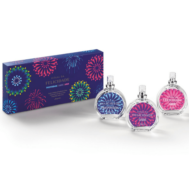 01 Estojo Ritual da Felicidade - 3x 25 ml. Caminho Olfativo: Oriental Vibrante, Floral Romântica e Floral Romântica
